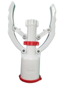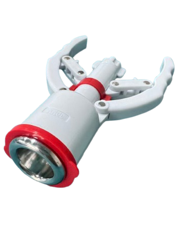 - Lepaskan pengaman, tekan pegangan hingga penuh dan tahan selama sekitar 5–10 detik, kemudian lepaskan dan bantu membuka kembali pegangan. Putar kenop pengatur berlawanan arah jarum jam untuk menarik kembali sejauh 5–7 mm, lalu dorong bagian pemotong ke depan melalui kenop untuk memastikan pemotongan telah sempurna. Apabila terdapat bagian kecil yang belum terpotong, rapikan menggunakan gunting atau pisau bedah.