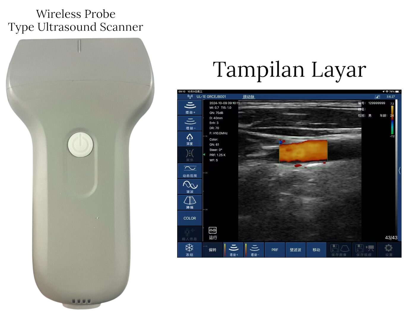 - Aplikasi Klinis: Tiroid, Bagian Kecil, Pediatri, Vaskular, Aliran Pembuluh Darah, karotis, Payudara, MSK, Saraf, Estetika
